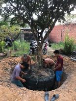 Cây sau khi di dời sẽ được di dời qua chổ trồng mới một cách cẩn thận. Chúng tôi sẽ đào lỗ và bồi phân tro để khi cây ra rễ sẽ hấp thụ được chất dinh dưỡng thì cây mau xanh tốt và ra chồi. Nên nhớ là tất cả cây trồng xuống đất phải được gia cố cây chống cẩn thận để tránh ngã đổ và động rễ cây mới ra.