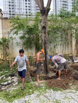 Cây sau khi di dời sẽ được di dời qua chổ trồng mới một cách cẩn thận. Chúng tôi sẽ đào lỗ và bồi phân tro để khi cây ra rễ sẽ hấp thụ được chất dinh dưỡng thì cây mau xanh tốt và ra chồi. Nên nhớ là tất cả cây trồng xuống đất phải được gia cố cây chống cẩn thận để tránh ngã đổ và động rễ cây mới ra.
